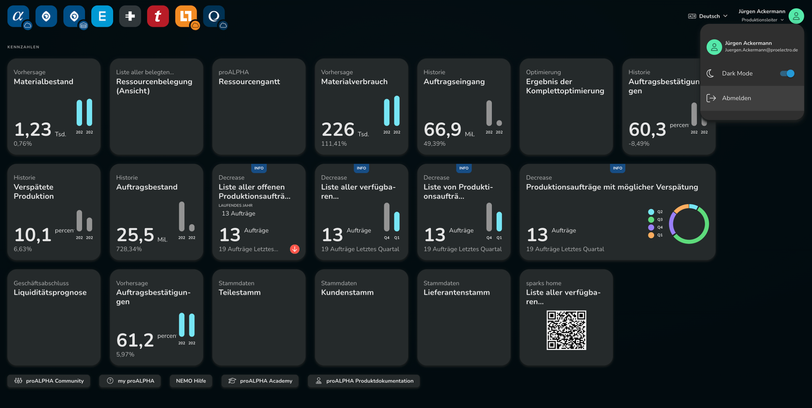 Die Plattform Proalpha Home bündelt Informationen, Workflows und Anwendungen rollenbasiert an einem Ort. (Quelle: Proalpha)
