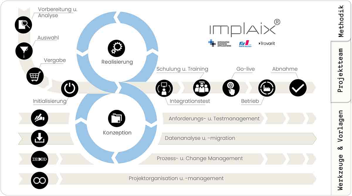 - auf dem Aachener Implementierungsmodell für Business Software (ImplAiX®) methodisch basiert