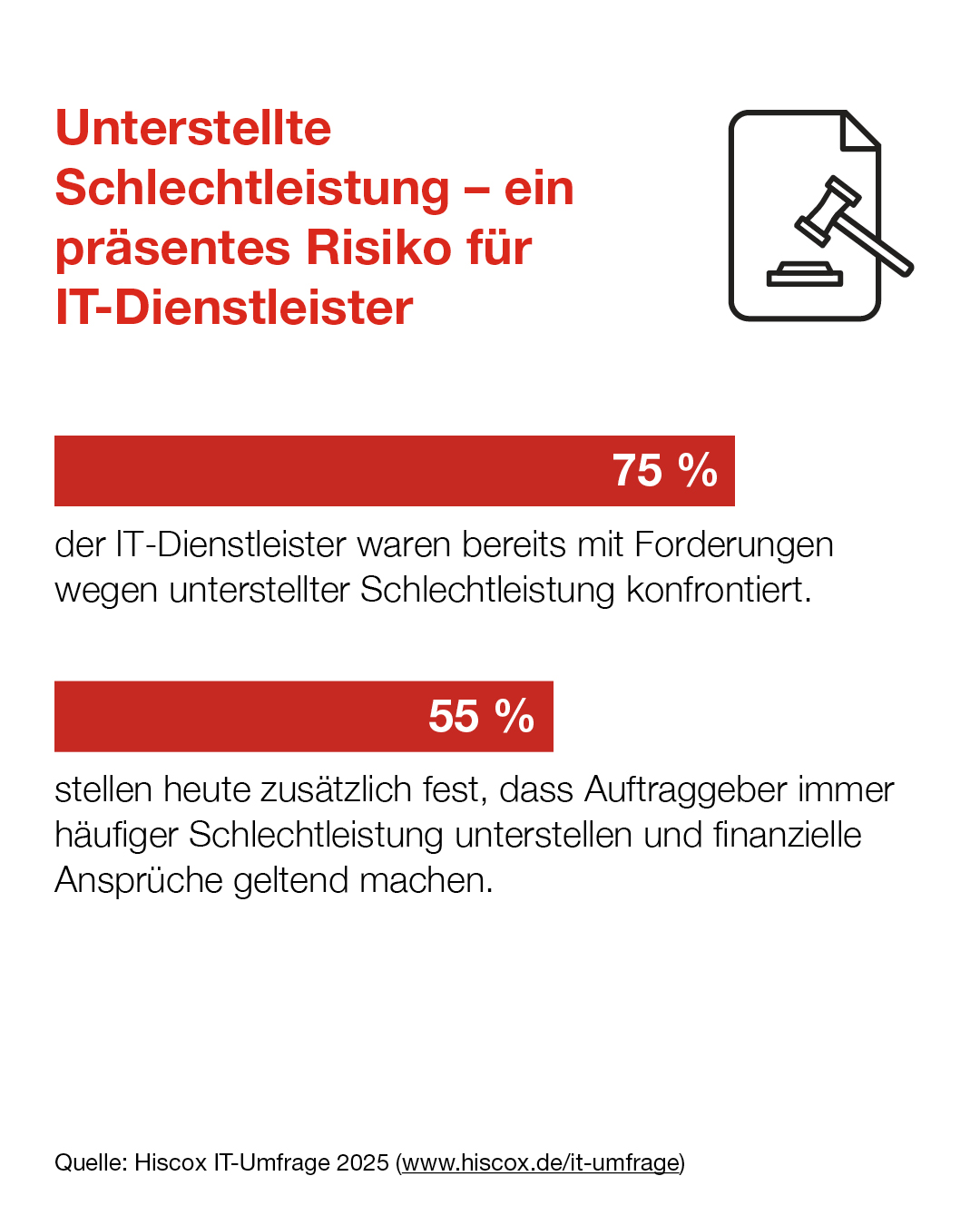 Künstliche Intelligenz bei IT-DienstleisternAuch mögliche Forderungen nach Schadenersatz schüren die Unsicherheit. So nehmen die Forderungen der Auftraggeber wegen vermeintlicher Schlechtleistungen spürbar zu. Lediglich ein Viertel der Unternehmen blieb im vergangenen Jahr davon verschont. 55 Prozent der IT-Dienstleister gaben an, dass sie häufiger als früher mit solchen Forderungen konfrontiert werden.