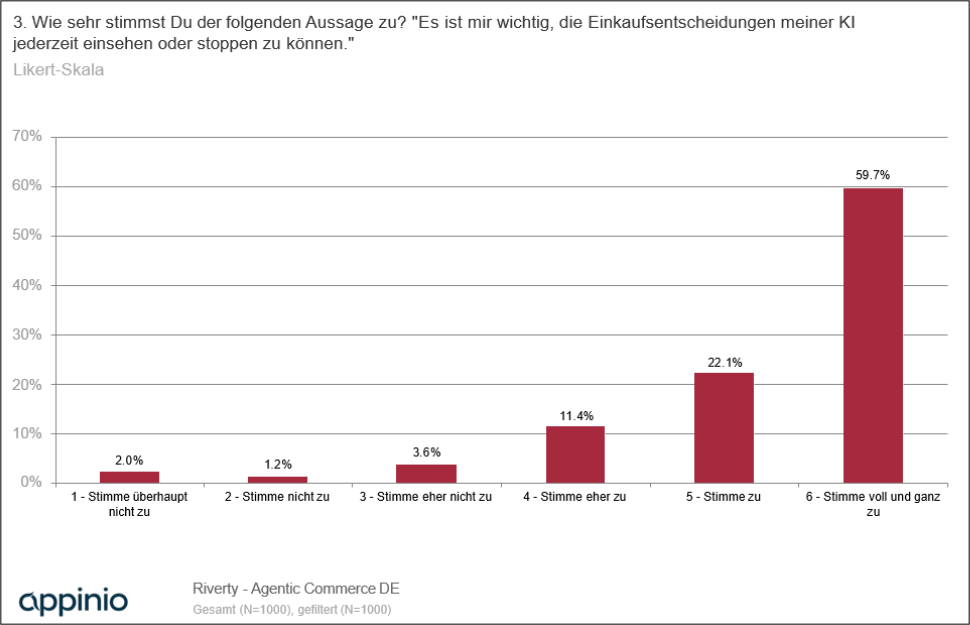 Die Zahlen deuten darauf hin, dass Verbraucher zwar neugierig auf KI-gestützte Einkaufsprozesse sind – die Autonomie der Systeme jedoch klar begrenzen wollen.
